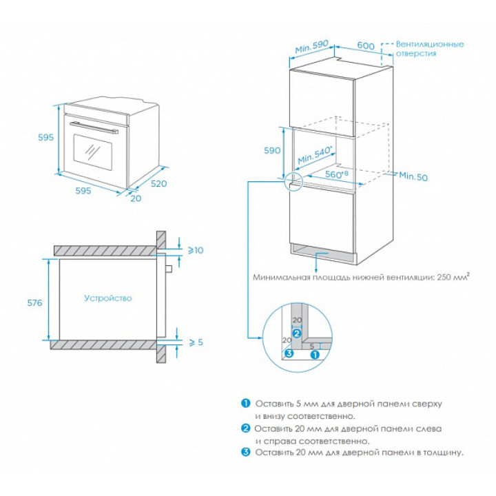 | Размер для встраивания (ВхШхГ) | 600х600х590 мм |