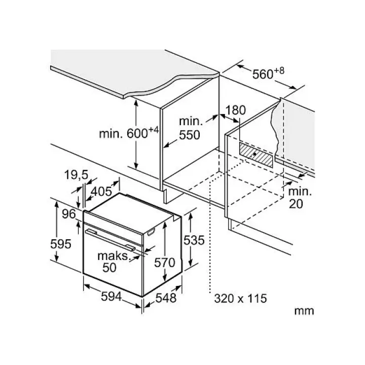 | Габариты встраивания (ВхШхГ) | 550х560-568х585-595 мм |