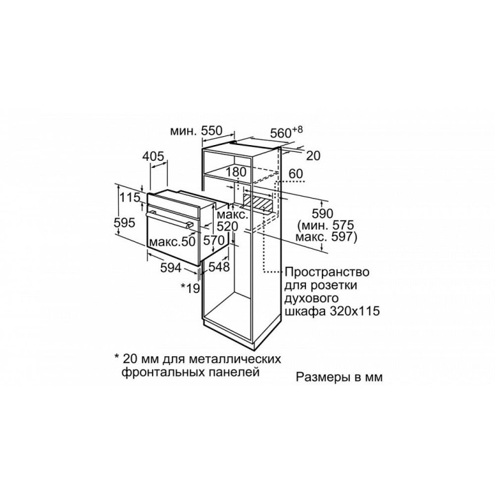| Размеры ниши для встраивания (ВхШхГ) | 575-597x560-568x550 мм |