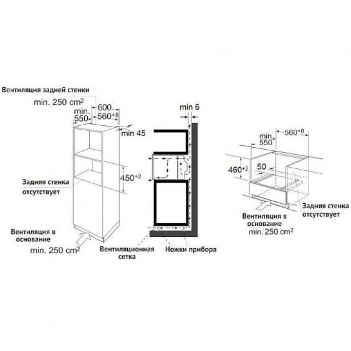 | Размеры встраивания (ВхШхГ) | 460х560х550 мм |