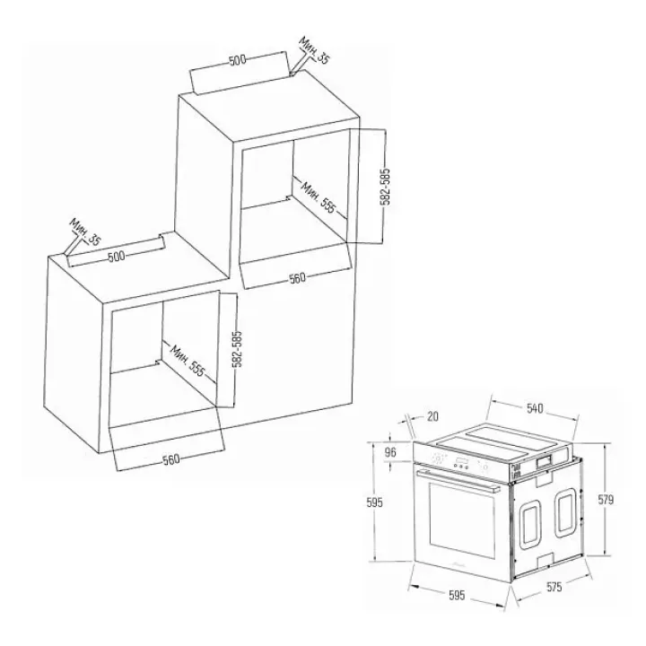 | Габариты ниши (ВхШхГ) | 585x560x555 мм |