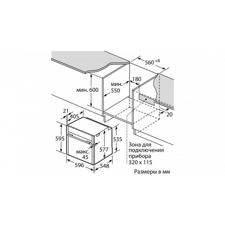 | Габариты ниши для встраивания (ВxШxГ) | 60х56-57х55 см |