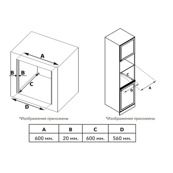 | Габариты ниши (ВхШхГ) | 600х560х600 мм |