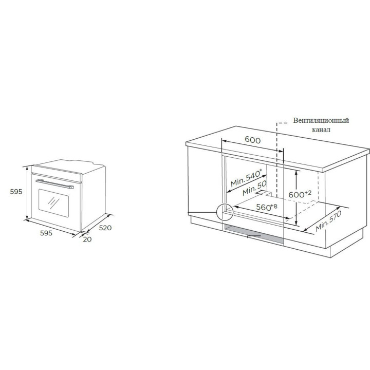 | Габариты ниши (ВхШхГ) | 600-602х560-568х540 мм |