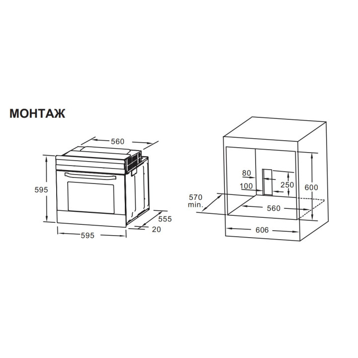 | Габариты ниши (ВхШхГ) | 600х560х570 мм |