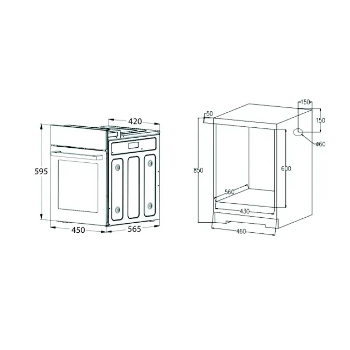 | Габариты ниши (ВхШхГ) | 600х430х560 мм |