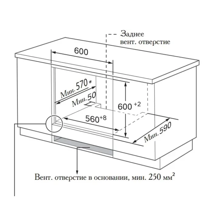 | Габариты ниши (ВхШхГ) | 600x560x570 мм |