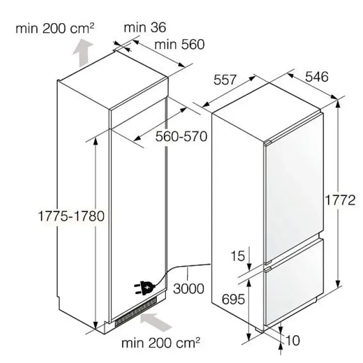 | Габариты ниши (ВхШхГ) | 1775-1780х560-570х560 мм |