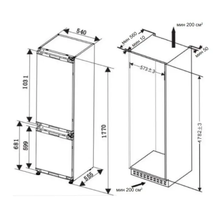 | Габариты ниши (ВхШхГ) | 1782-1785х560-570x560 мм |