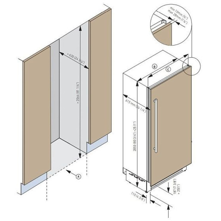 | Габариты встраивания (ВхШхГ) | 2064х600х650 мм |