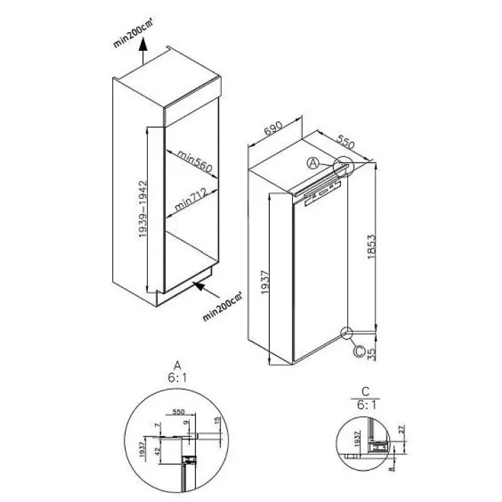 | Габариты ниши (ВхШхГ) | 1939-1942х712х560 мм |