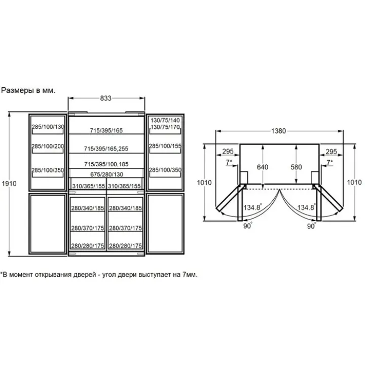 | Количество полок дверей | 7 шт |