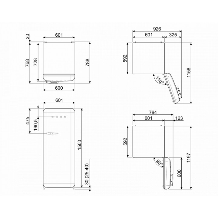 | Ширина с дверцей, открытой на 90°С | 810 мм |
