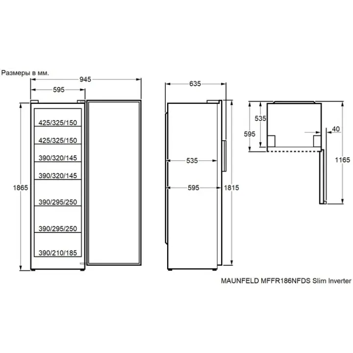 | Габариты (ВхШхГ) | 1865х595х595 мм |