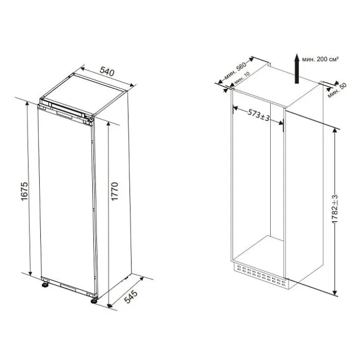 | Габариты ниши (ВхШхГ) | 1782x573x560 мм |