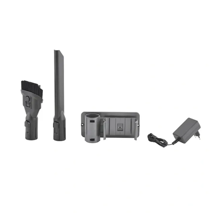 | Комплектация | аккумулятор, турбощетка, мини-турбощетка, щелевая насадка, насадка из микрофибры, насадка для мягкой мебели, сетевой адаптер питания, крепление на стену, крепежные элементы |