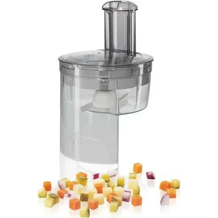 | Типы дополнительных насадок | двухсторонний диск - терка (крупная/мелкая), диск для картофеля фри, венчик для взбивания, венчик для жидкого теста, крюк для теста, универсальная резка с 3-мя дисками, Насадка для нарезки кубиками |
