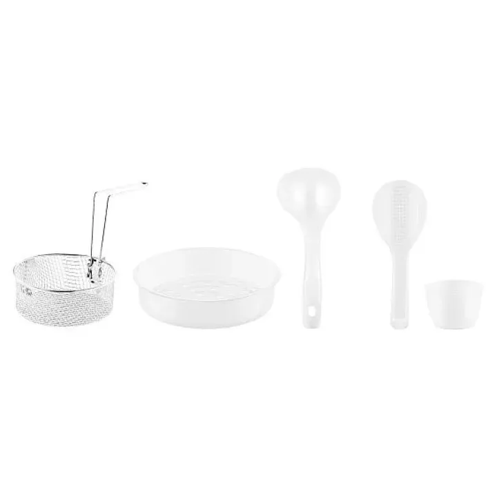 | Комплектация | контейнер для варки на пару, корзина для фритюра, стаканчики для йогурта, мерный стакан, половник, ложка, книга рецептов |