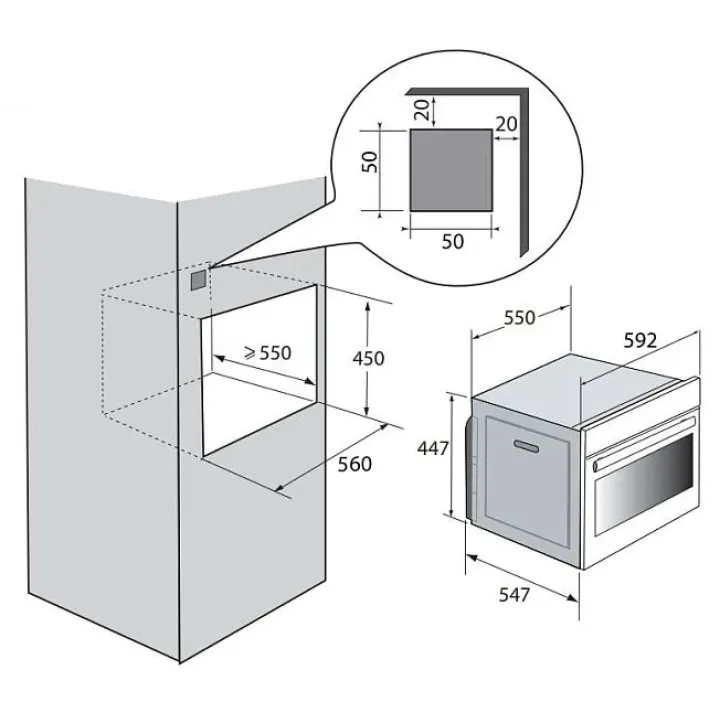 | Габариты ниши (ВхШхГ) | 450х560х550 мм |