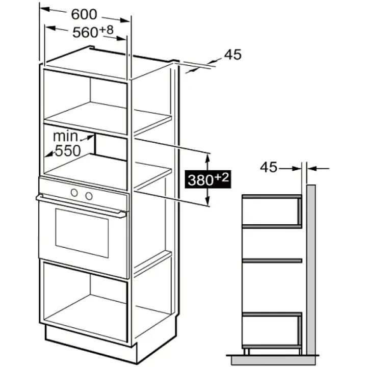 | Габариты ниши (ВхШхГ) | 382х560-568х550 мм |