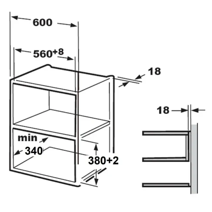 | Габариты ниши (ВхШхГ) | 380-382х560-568х340 мм |