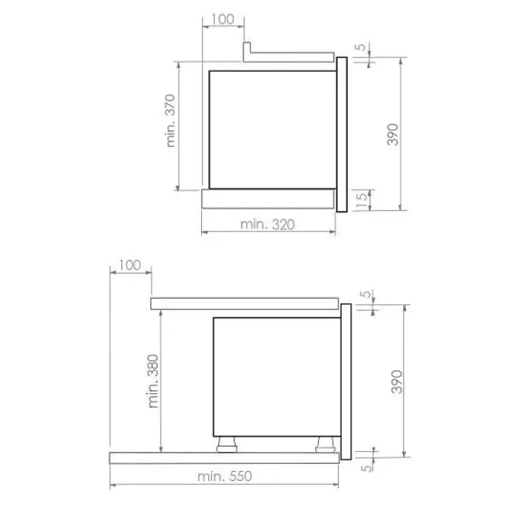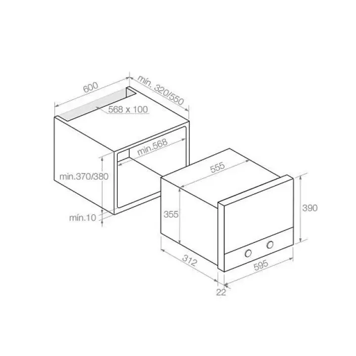 | Габариты ниши (ВхШхГ) | 370/380х568х320/550 мм |