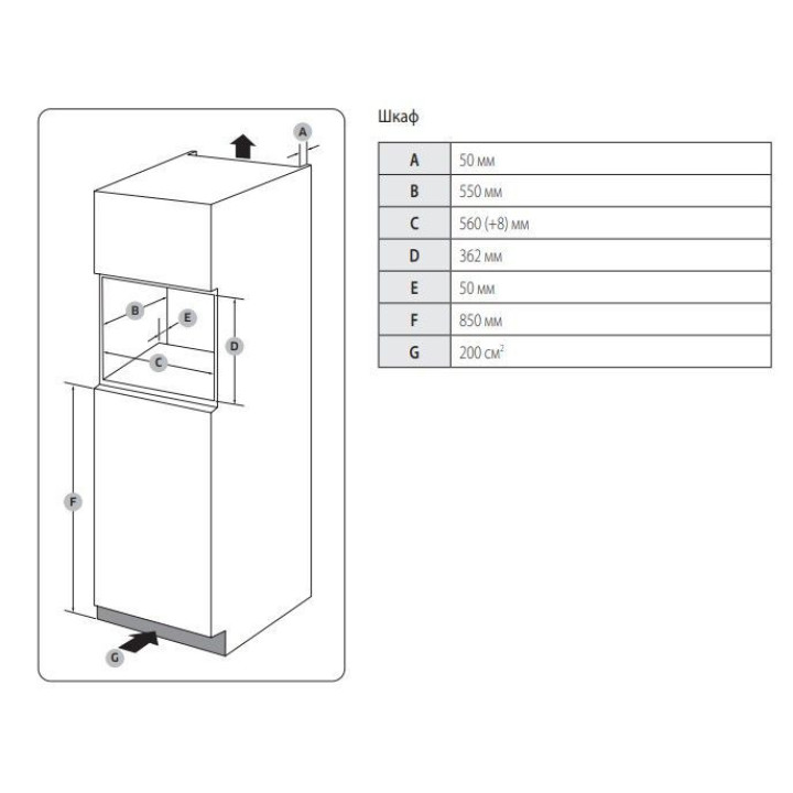 | Габариты встраивания (ШхВхГ) | 560-568х362х550 мм |