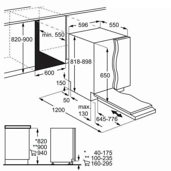 | Габариты ниши (ВхШхГ) | 820-900х600х550 мм |