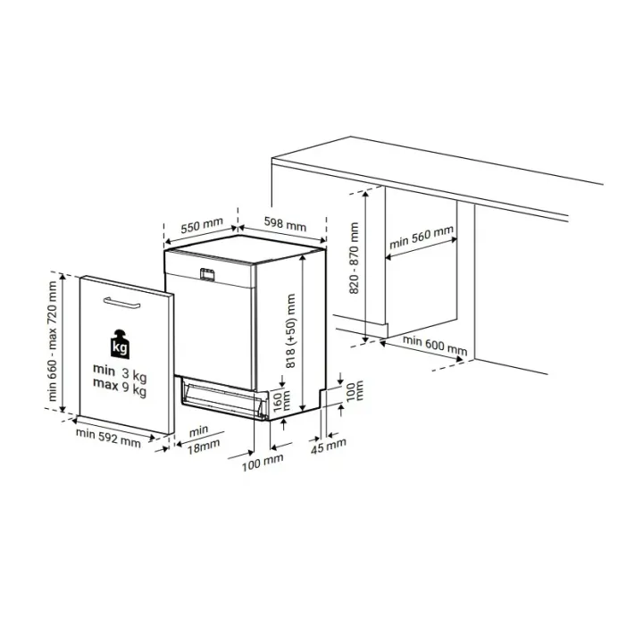 | Габариты ниши (ШхГхВ) | 820-870х600х560 мм |