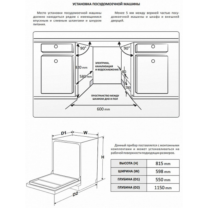 | Габариты ниши (ВхШхГ) | 820х600х580 мм |