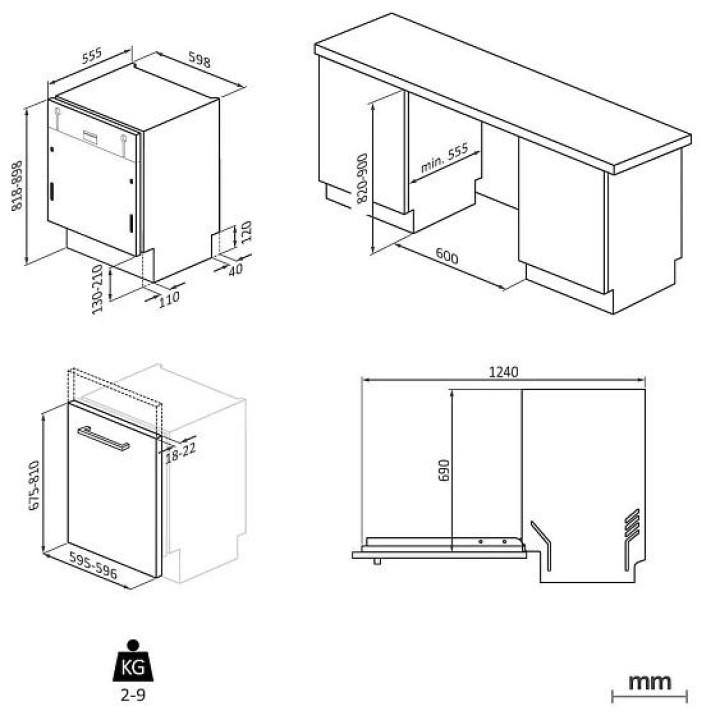 | Габариты ниши (ВхШхГ) | 820-900х600х555 мм |