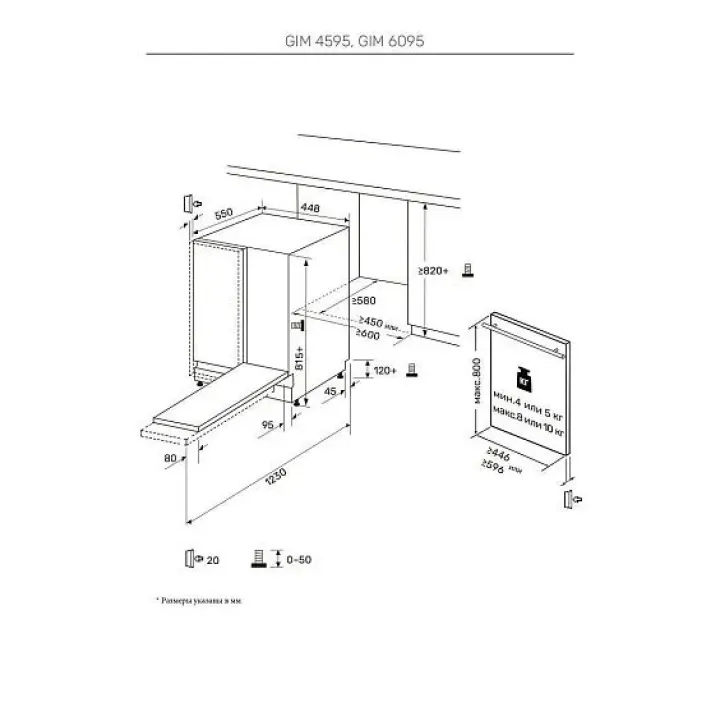 | Габариты ниши (ВхШхГ) | 820х450х580 мм |
