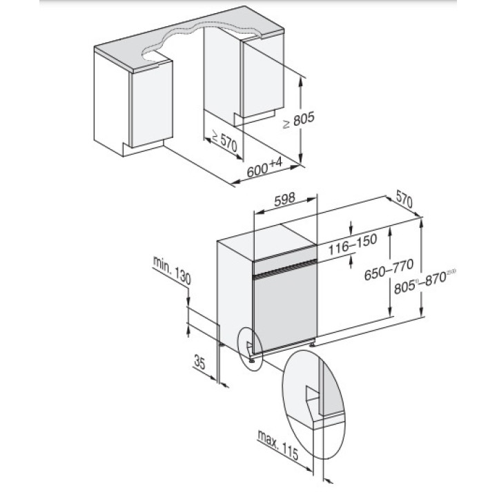 | Габариты ниши (ВхШхГ) | 805-870х600-604х570 мм |