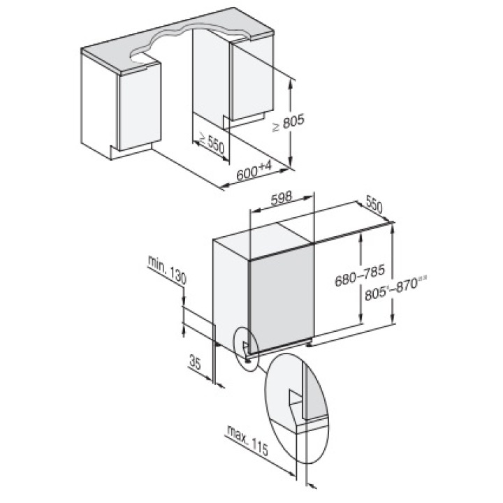 | Габариты ниши (ВхШхГ) | 805-870х600х550 мм |