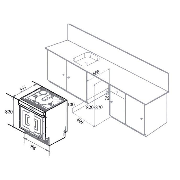 | Габариты ниши (ВхШхГ) | 820-870х600х600 мм |
