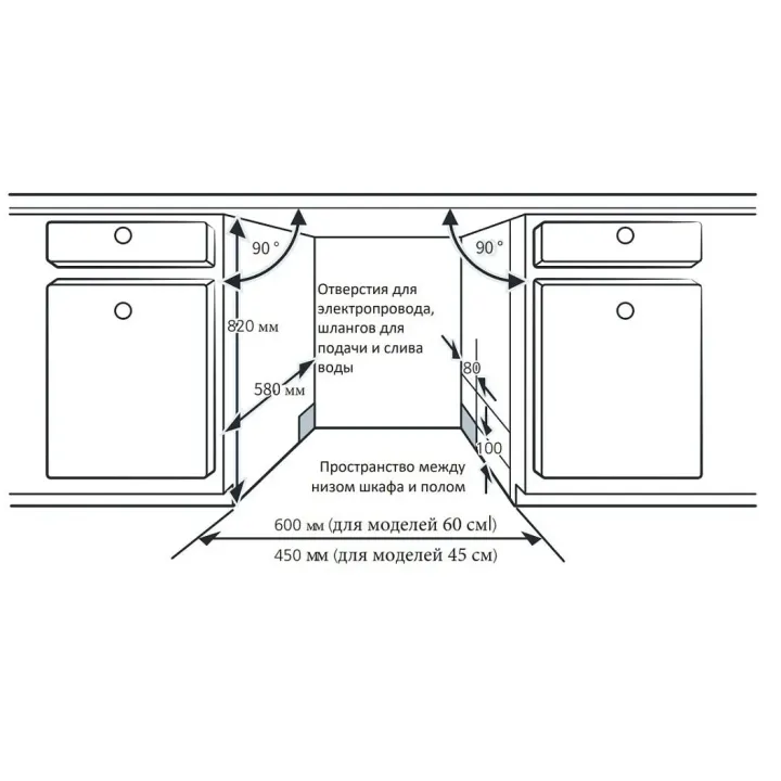 | Габариты ниши (ВхШхГ) | 820х450х580 мм |