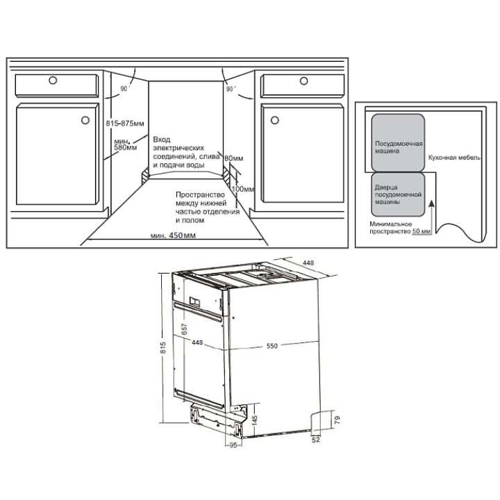 | Габариты ниши (ВхШхГ) | 815-875х450х580 мм |
