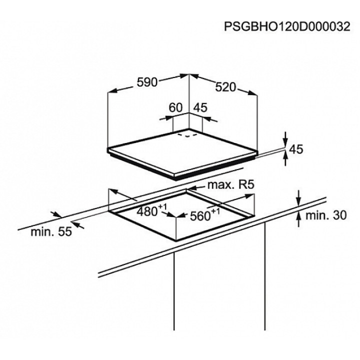 Размеры для встраивания (ШхГ) 56 x 48 см