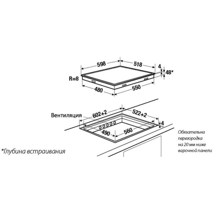 | Размеры для встраивания (ШхГ) | 56 x 49 см |