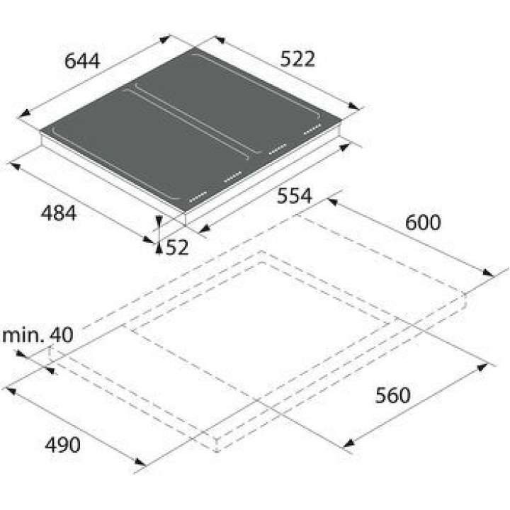 | Размеры для встраивания (ШхГ) | 560x490 мм |