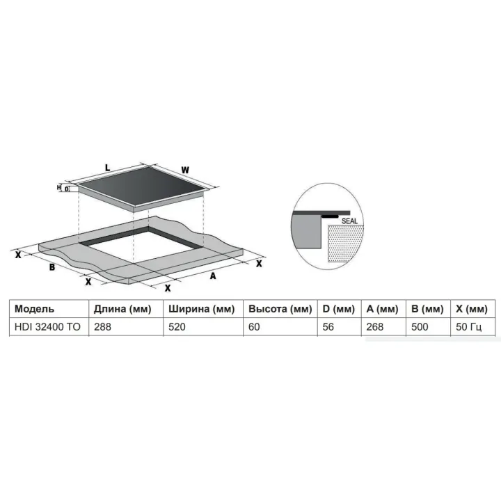 | Габариты ниши (ВхШхГ) | 56х268x500 мм |