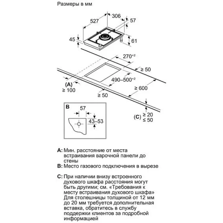 | Минимальная толщина столешницы | 20 мм |