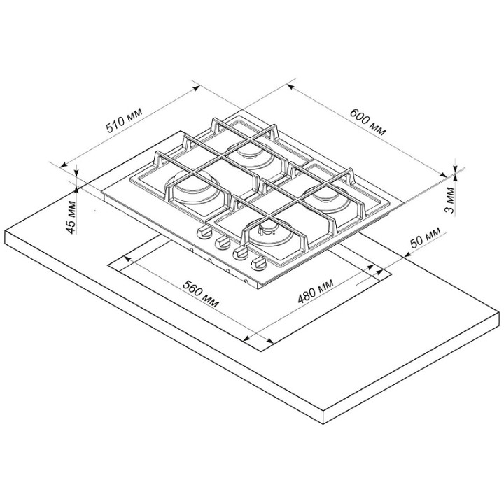 | Габариты ниши для встраивания (ВxШxГ) | 16x56x48 см |