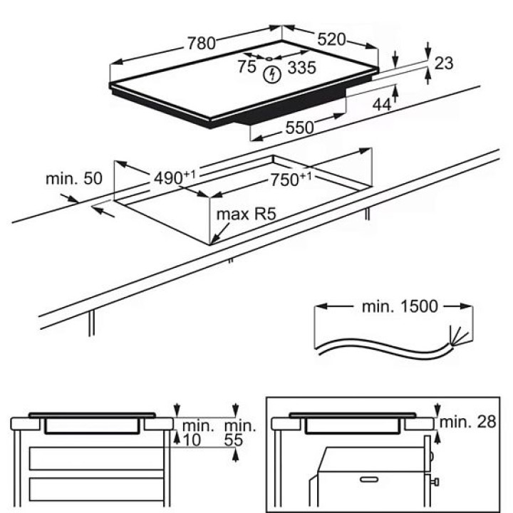 | Габариты ниши (ВхШхГ) | 28х750х490 мм |