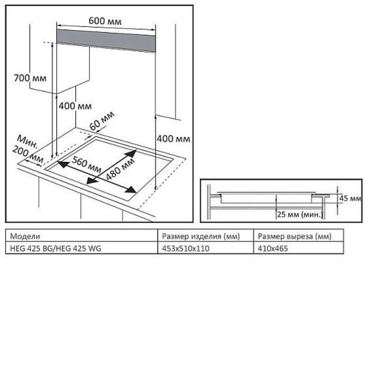 | Габариты ниши (ШхГ) | 410х465 мм |