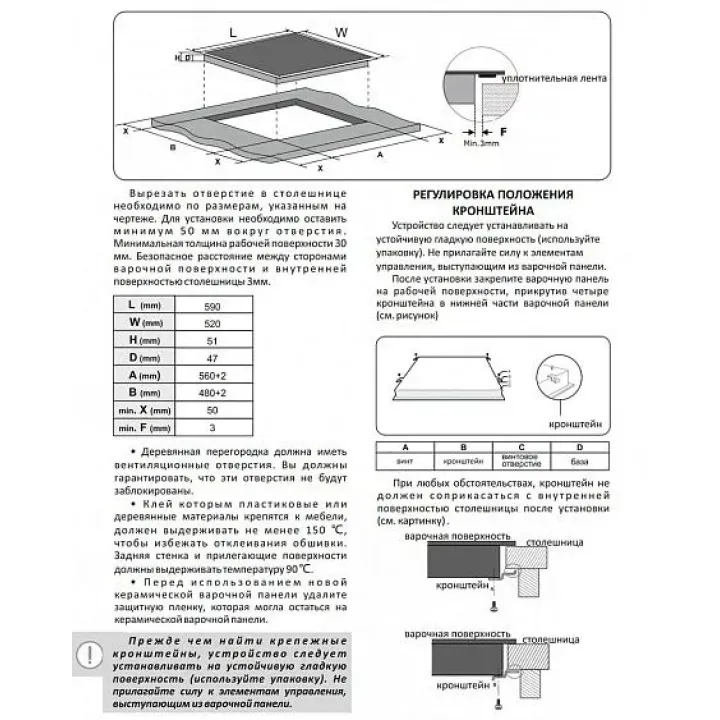 | Габариты ниши (ВхШхГ) | 47х560х480 мм |
