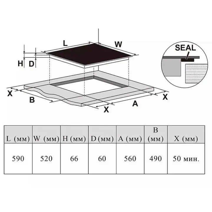 | Габариты ниши (ВхШхГ) | 60х560х490 мм |