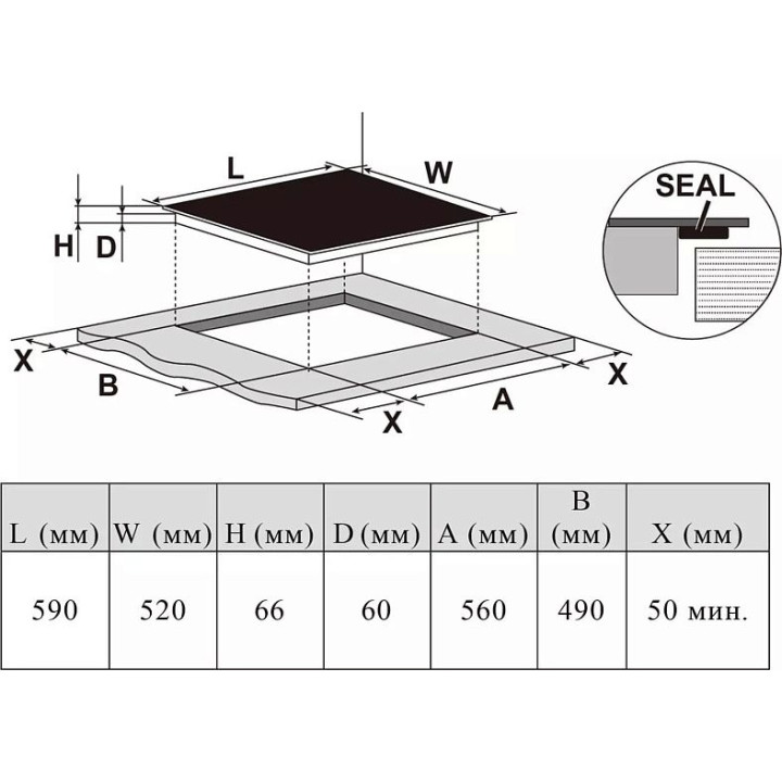 | Габариты ниши (ВхШхГ) | 60х560х490 мм |