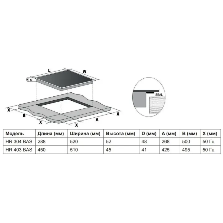 | Габариты ниши (ВхШхГ) | 48x268x500 мм |