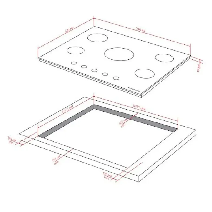 | Габариты ниши (ВхШхГ) | 45х555х475 мм |
